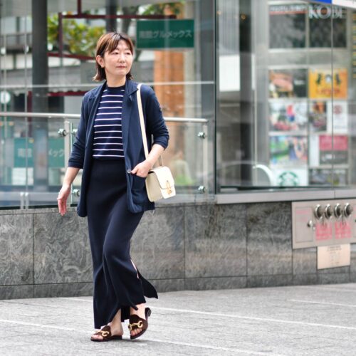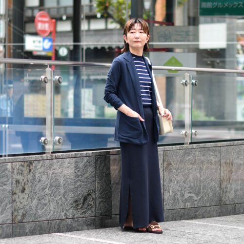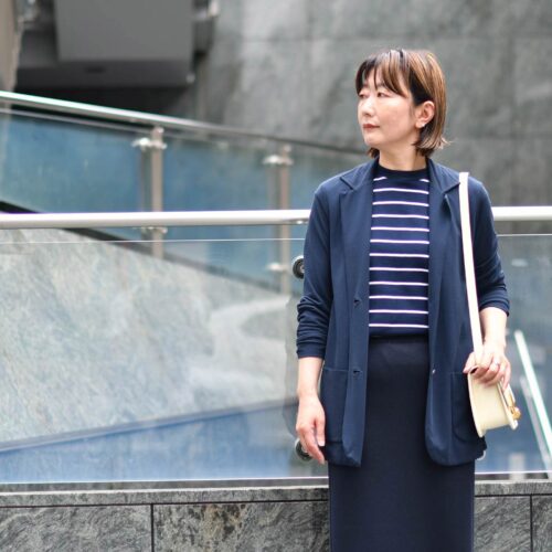 本日はネイビーのワントーンコーディネートのご紹介でございます。